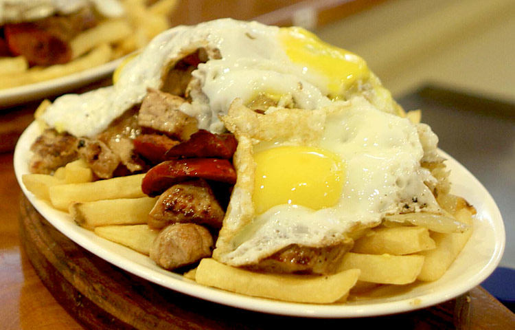 Parrillada: A great dinner choice for the meat lover in all off us. Also meant for sharing, order a parilla and you will get a skillet loaded with a variety of meats, from chicken to sausage to pork to bacon-wrapped steak. It is often the centerpiece of family-style mealtimes. Rice, salad, and French fries are common sides.